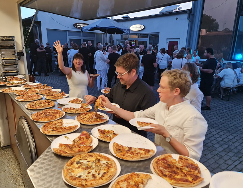 Frisch gebackene Pizza aus dem mobilen Ofen, dazu feine Antipasti und knackige Salate – alles wird vor Ort zubereitet und mit viel Liebe serviert. Eure Gäste können wählen, was sie mögen, es wird gelacht, gegessen und gefeiert – ganz ohne steifes Menü oder lange Wartezeiten.